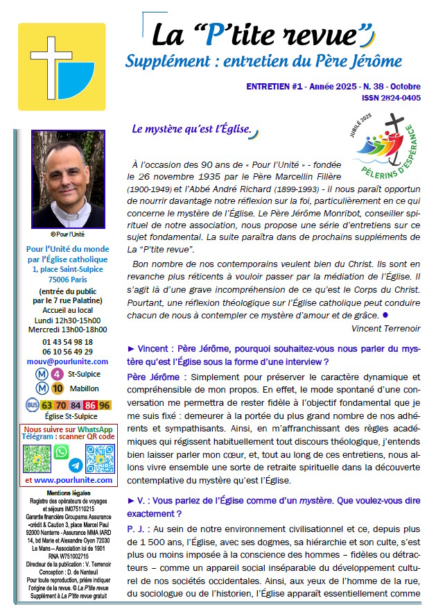 Nouveau pour nos 90 ans : entretien avec le Père Jérôme – Le mystère qu’est l’Église. (Supplément à La « P’tite revue »)